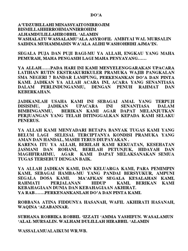 Contoh Teks Doa Upacara Pramuka – Kumpulan Doa