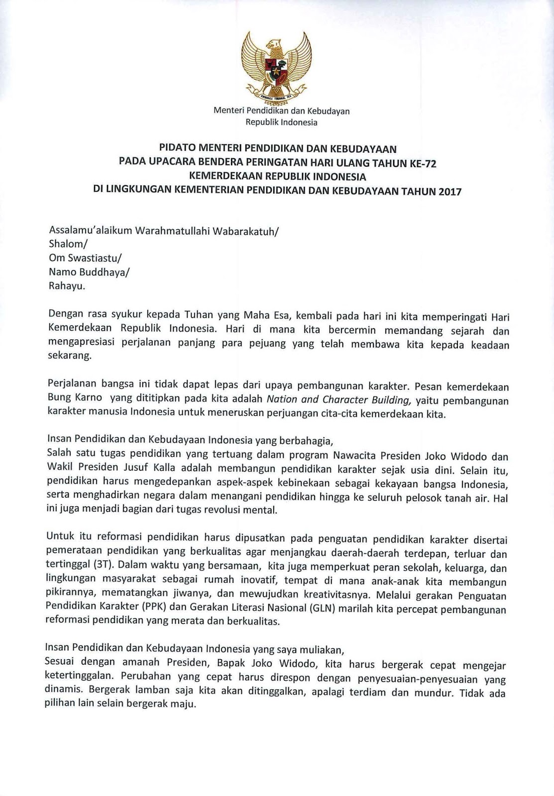 PIDATO SAMBUTAN MENDIKBUD HUT RI KE 72 TAHUN 2017 – gurumulia