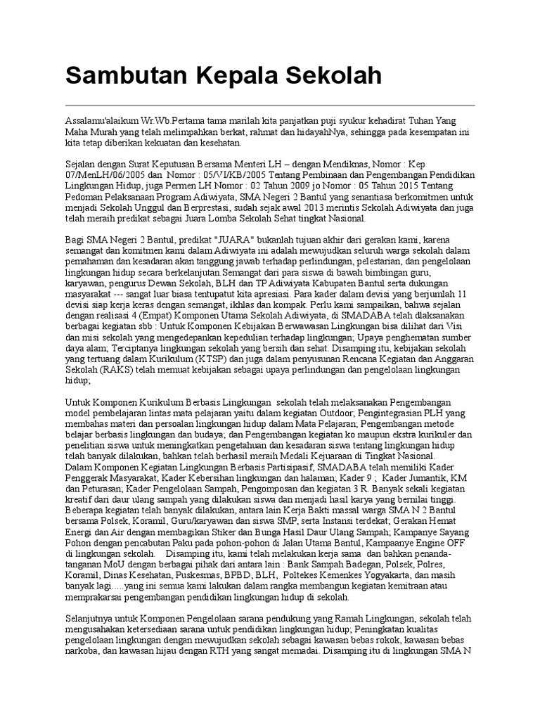 Salah satu contohnya yaitu sambutan kepala sekolah. Kata sambutan kata sambutan keluarga keagamaan tabligh akbar. Segala puji bagi Allah Tuhan.