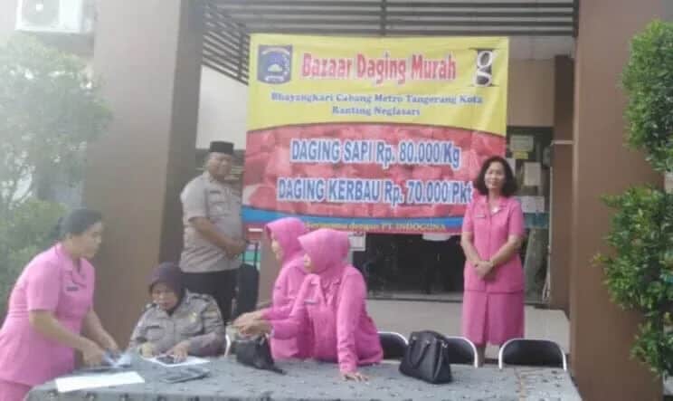 Kapolsek & Ketua Bhayangkari Ranting Neglasari Gelar Bazaar Daging Murah