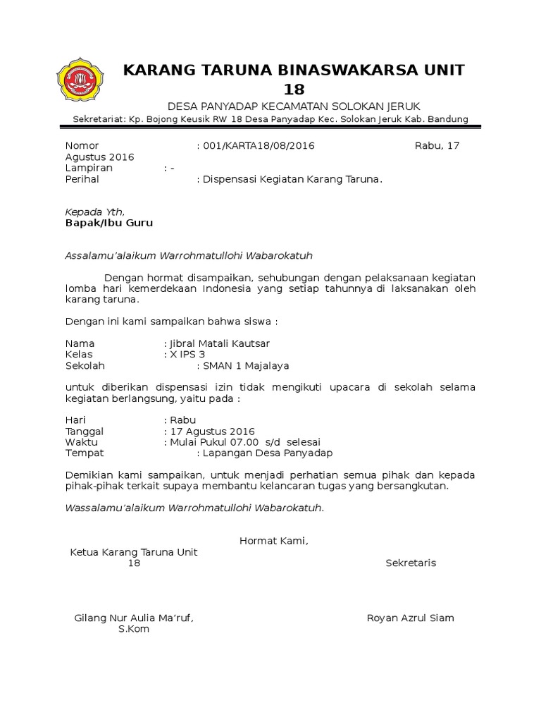 Contoh Surat Dispensasi Acara 17 Agustus – UNSPOKENBLOKE
