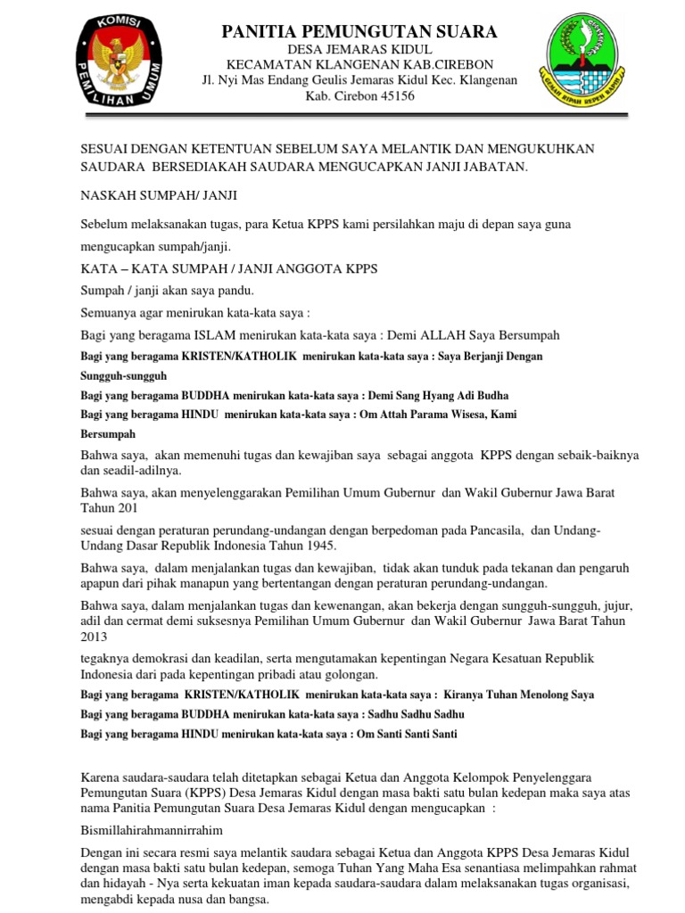 Contoh Sambutan Ketua Pps Dalam Pelantikan Kpps Barisan Contoh | My XXX