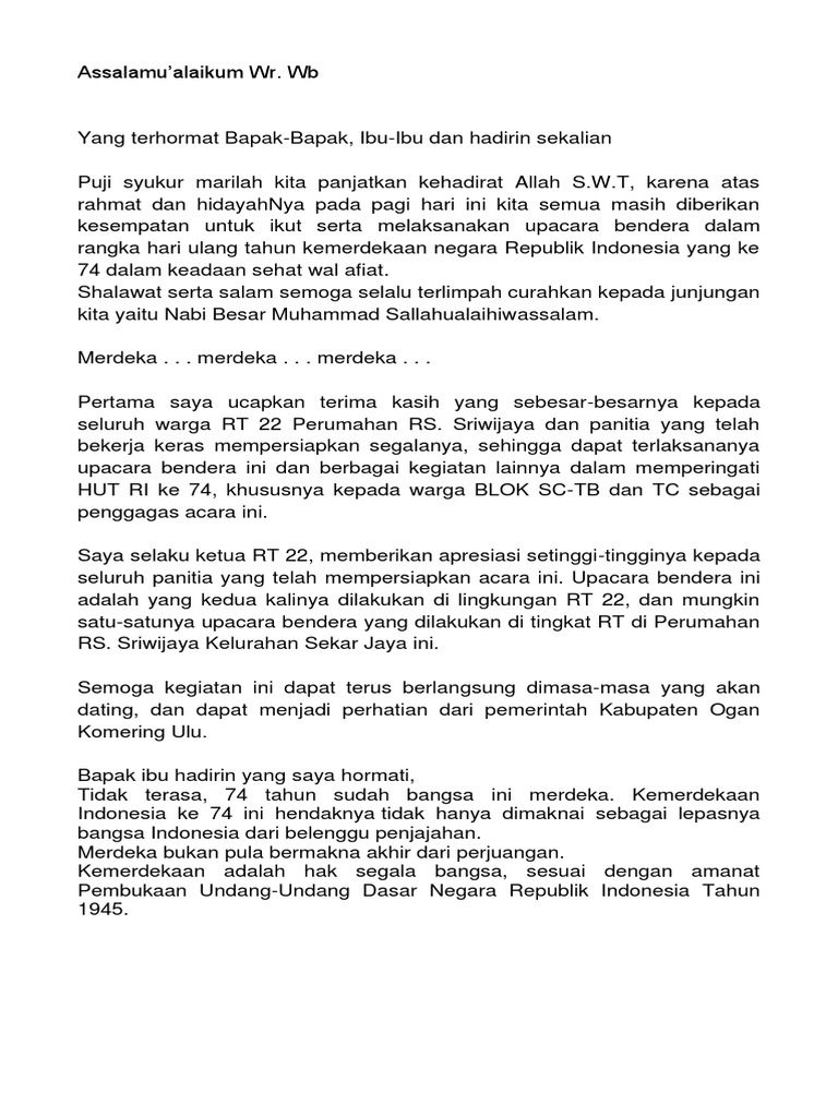 Teks Sambutan Ketua Rw 17 Agustus Terbaru – Kumpulan Referensi Teks Pidato