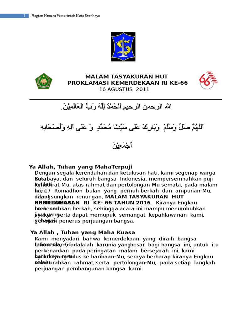 Teks Doa Malam Tirakatan Hut Ri Ke 73 – Berbagai Teks Penting