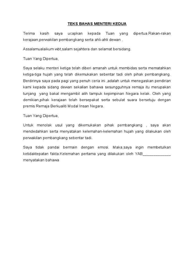 Contoh Teks Perbahasan Menteri Kedua