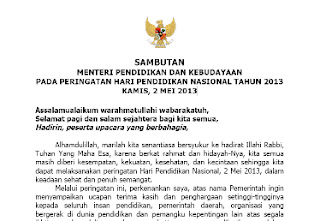 SAMBUTAN MENDIKBUD YANG HARUS DIBACA OLEH KEPALA SEKOLAH PADA HARI