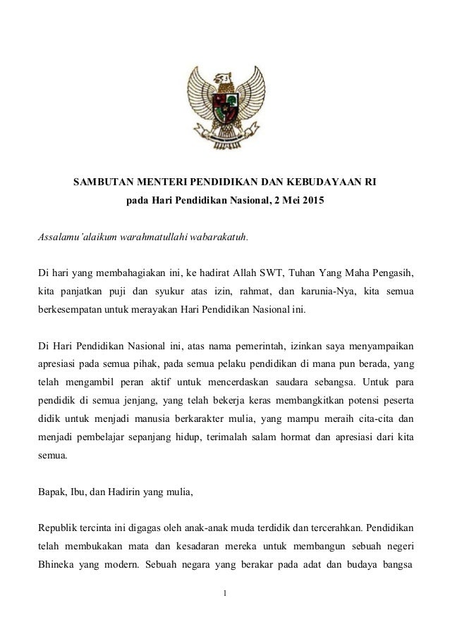 Sambutan Menteri Pendidikan Dan Kebudayaan Ri Hari Hardiknas 2015
