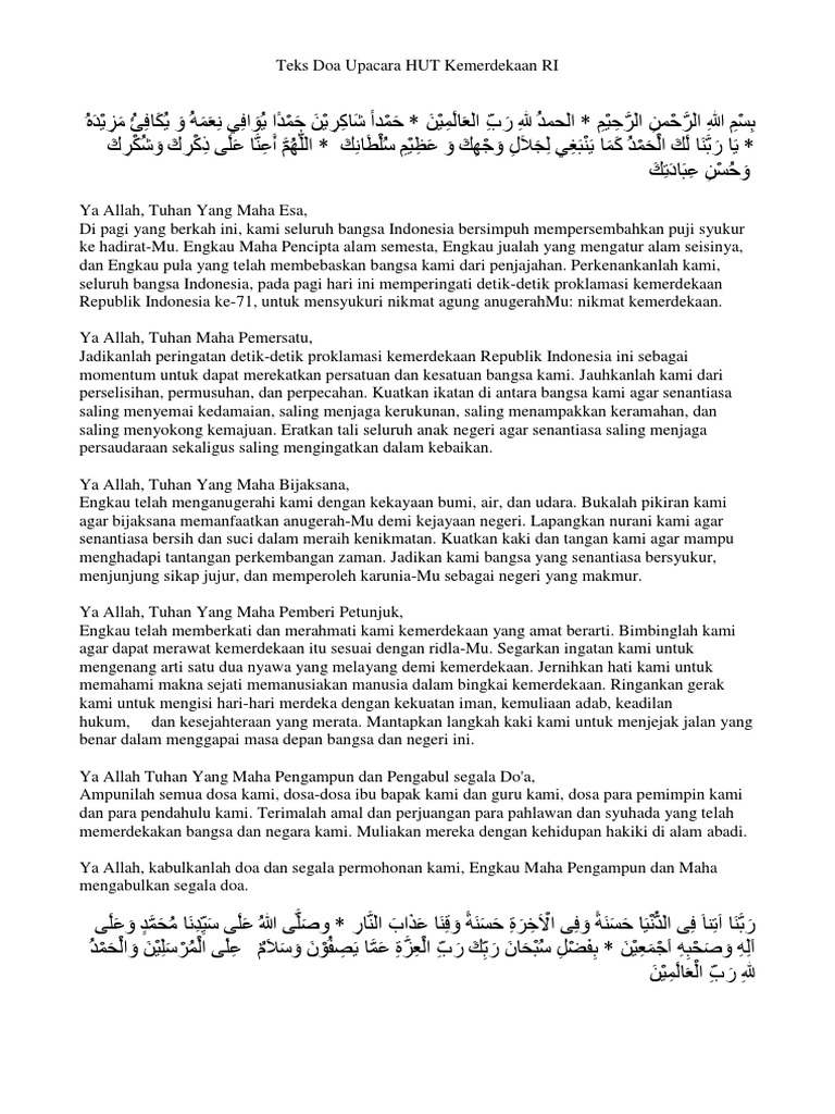 Teks Doa Hut Ri Ke 71 – Berbagai Teks Penting