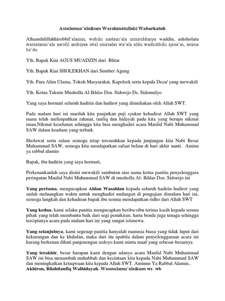 Contoh Contoh Teks Sambutan Ketua Panitia Maulid Bahasa Sunda Lengkap