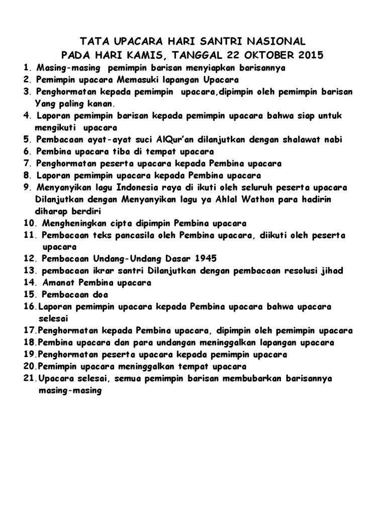 Susunan Upacara Hari Santri Resolusi Jihad Dan Ikrar Santri Nasional