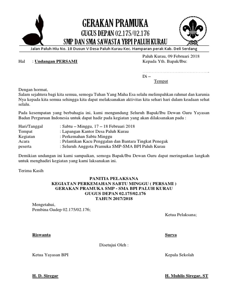 Contoh Surat Undangan Perkemahan Pramuka