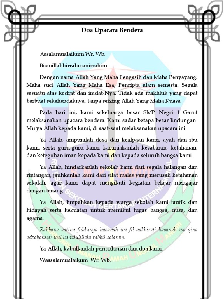 Teks Doa Upacara Bendera Mts – Kumpulan Doa
