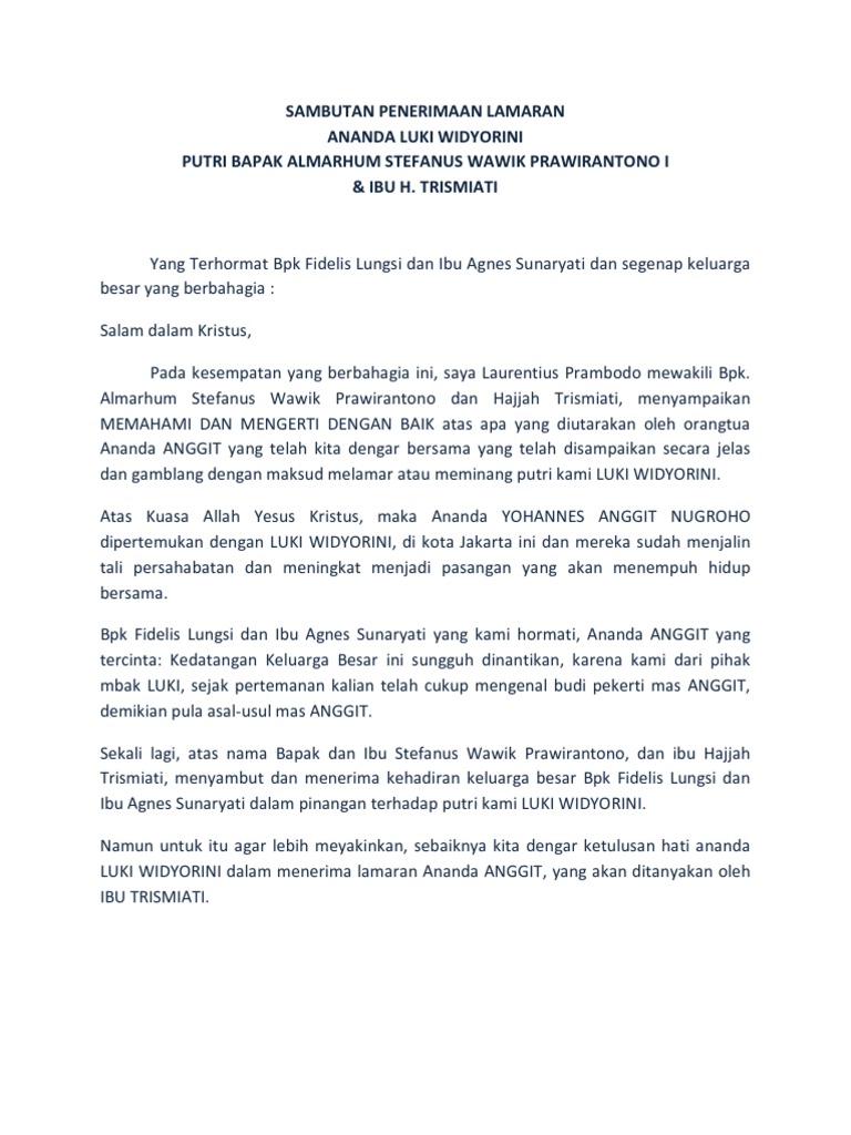 Contoh Sambutan Lamaran Pihak Wanita | PDF
