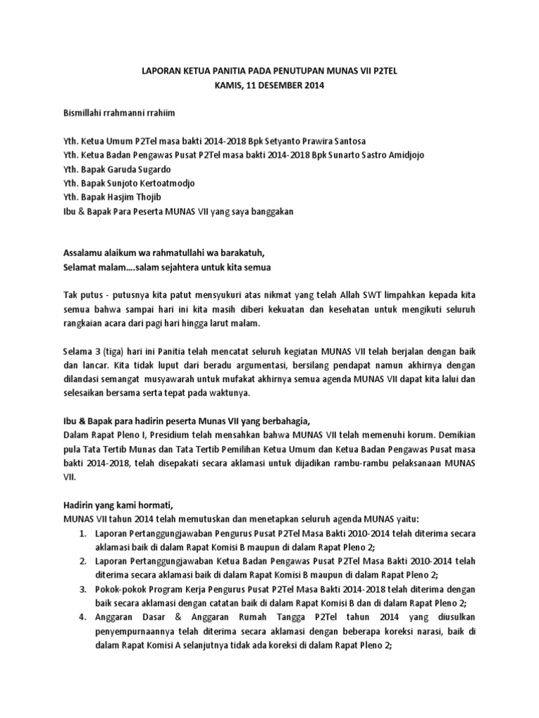 Sambutan Penutupan Ketua Panitia MUNAS-VII P2TEL