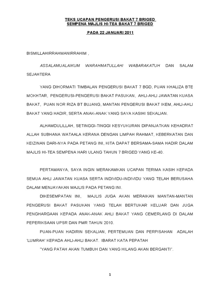 TEKS UCAPAN JAMUAN HI-TEA HUT 40
